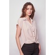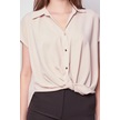 Likrasız Şık Kumaş Yakalı Düşük Omuzlu Önü Pileli Gömlek-bej Bej