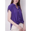 Likrasız Şık Kumaş Yakalı Düşük Omuzlu Önü Pileli Gömlek-eflatun Eflatun
