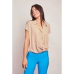 Likrasız Şık Kumaş Yakalı Düşük Omuzlu Önü Pileli Gömlek-Kum Beji Kum Beji