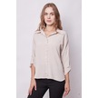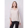 Likrasız Şık Kumaş Yakalı Sırt Dekolteli Uzun Kol Apoletli Gömlek-bej Bej