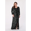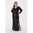 Lilas Xxl Kadın Büyük Beden Pul Payetli V Yaka Uzun Abiye Elbise 2479 Siyah Siyah