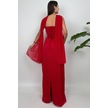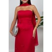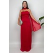 Lilina Straplez Fiyonk Detaylı Şal Aksesuarlı Uzun Kırmızı Abiye Elbise Kırmızı