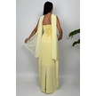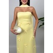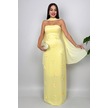 Lilina Straplez Fiyonk Detaylı Şal Aksesuarlı Uzun Sarı Abiye Elbise Sarı