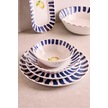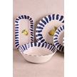 Limone Blu 27 Parça 6 Kişilik Seramik Yemek Takımı Limon Desenli Mavi Çizgili Sunum Seti Cokrenklı Çok Renkli