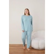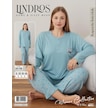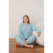 Lindros Kadın Pamuklu Düğme Yaka Raporlu İnterlok Battal Pijama Takımı 05108 - 1 Adet Yeşil