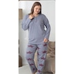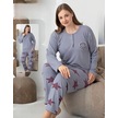 Lindros Kadın Pamuk'lu Düğme Yaka Raporlu İnterlok Kışlık Battal Pijama Takımı 05144 - 1 Adet Gri