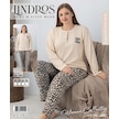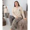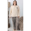 Lindros Kadın Pamuk'lu Düğme Yaka Raporlu İnterlok Kışlık Battal Pijama Takımı 05160 - 1 Adet Ekru