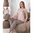 Lindros Kadın Pamuk'lu Düğme Yaka Raporlu İnterlok Kışlık Pijama Takımı 0248 - 1 Adet Bej
