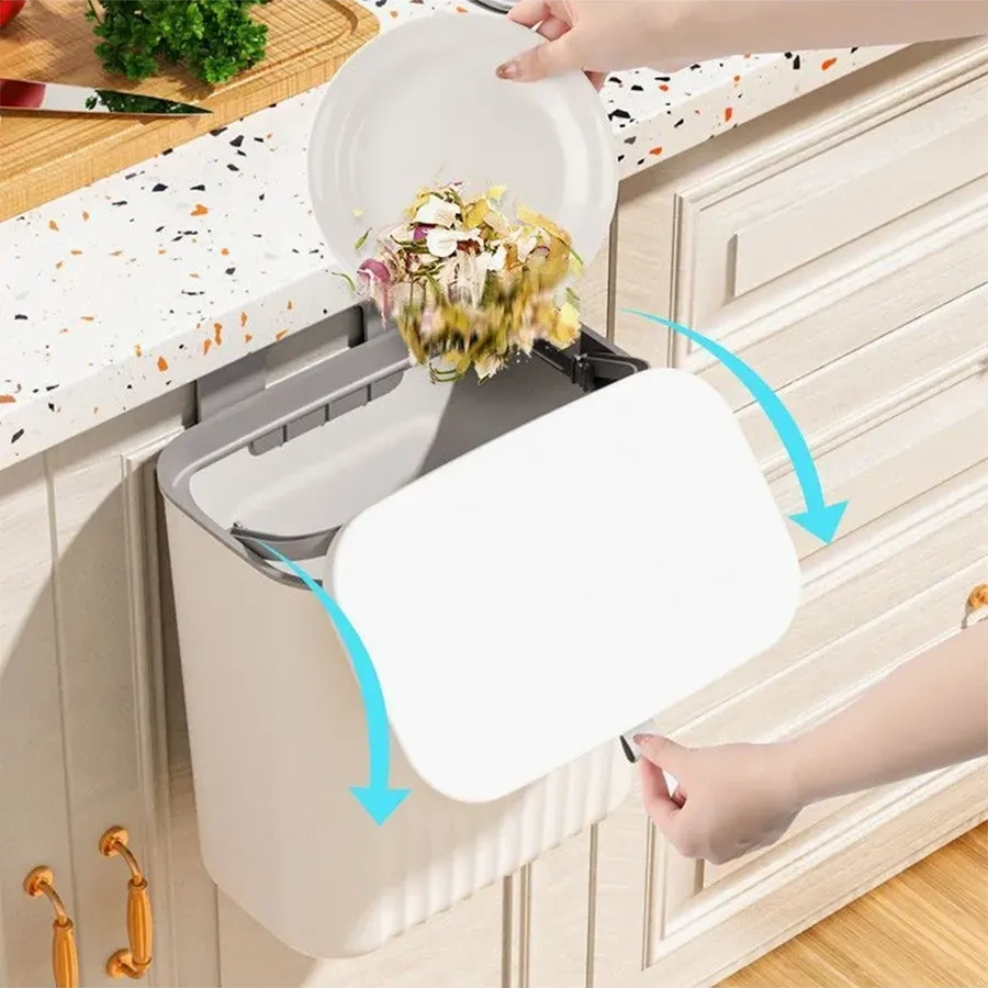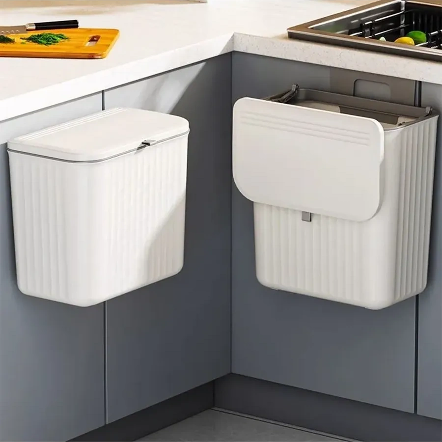Lınmu Mutfak İçin 7 Litrelik Kapaklı Asılabilir Çöp Kovası 333095341 Beyaz