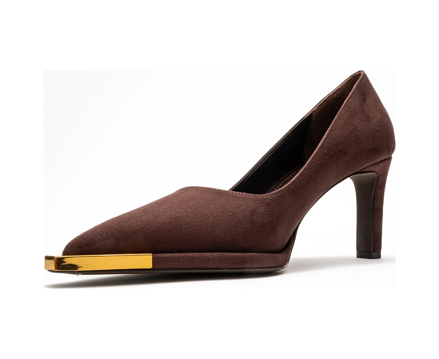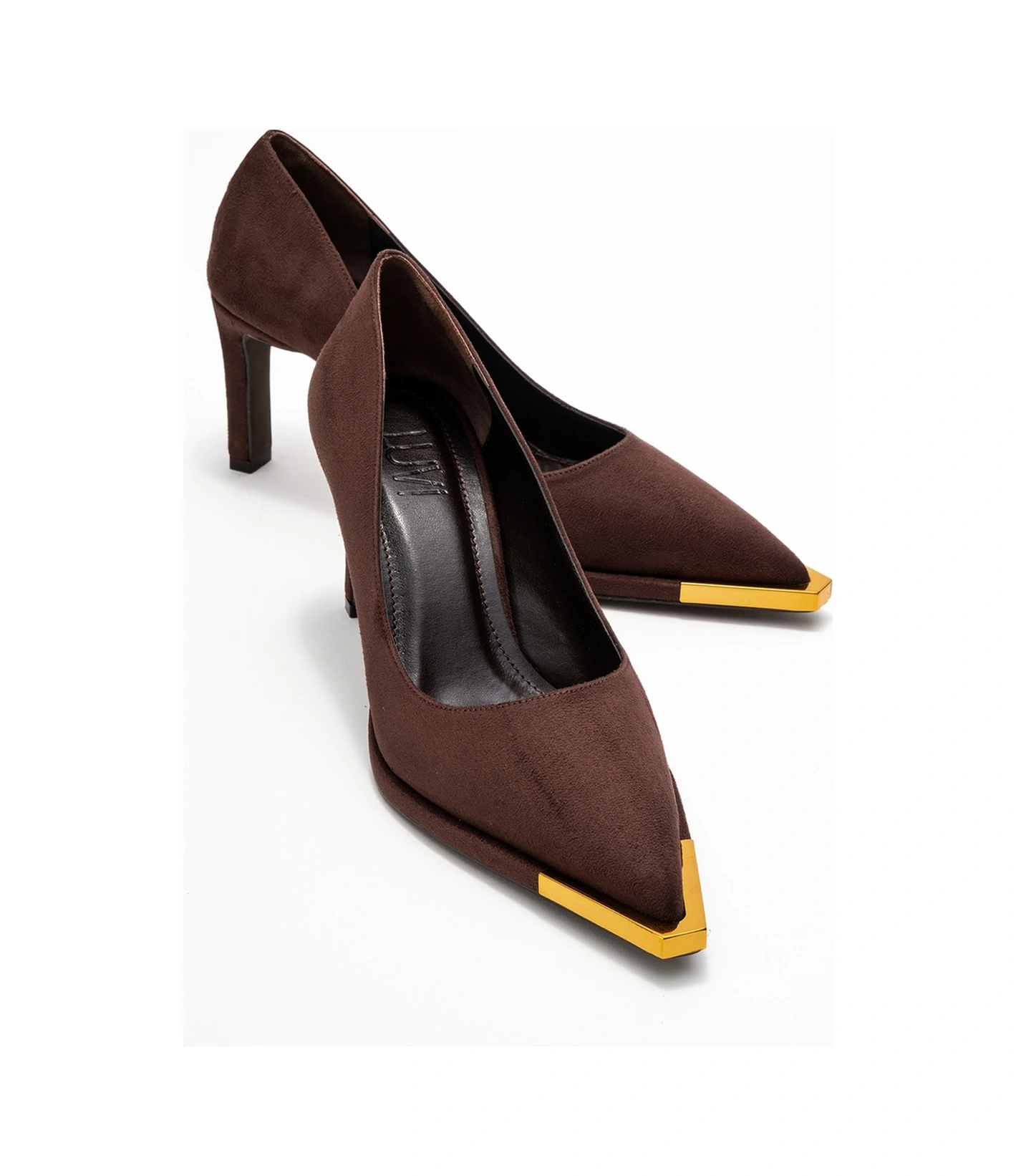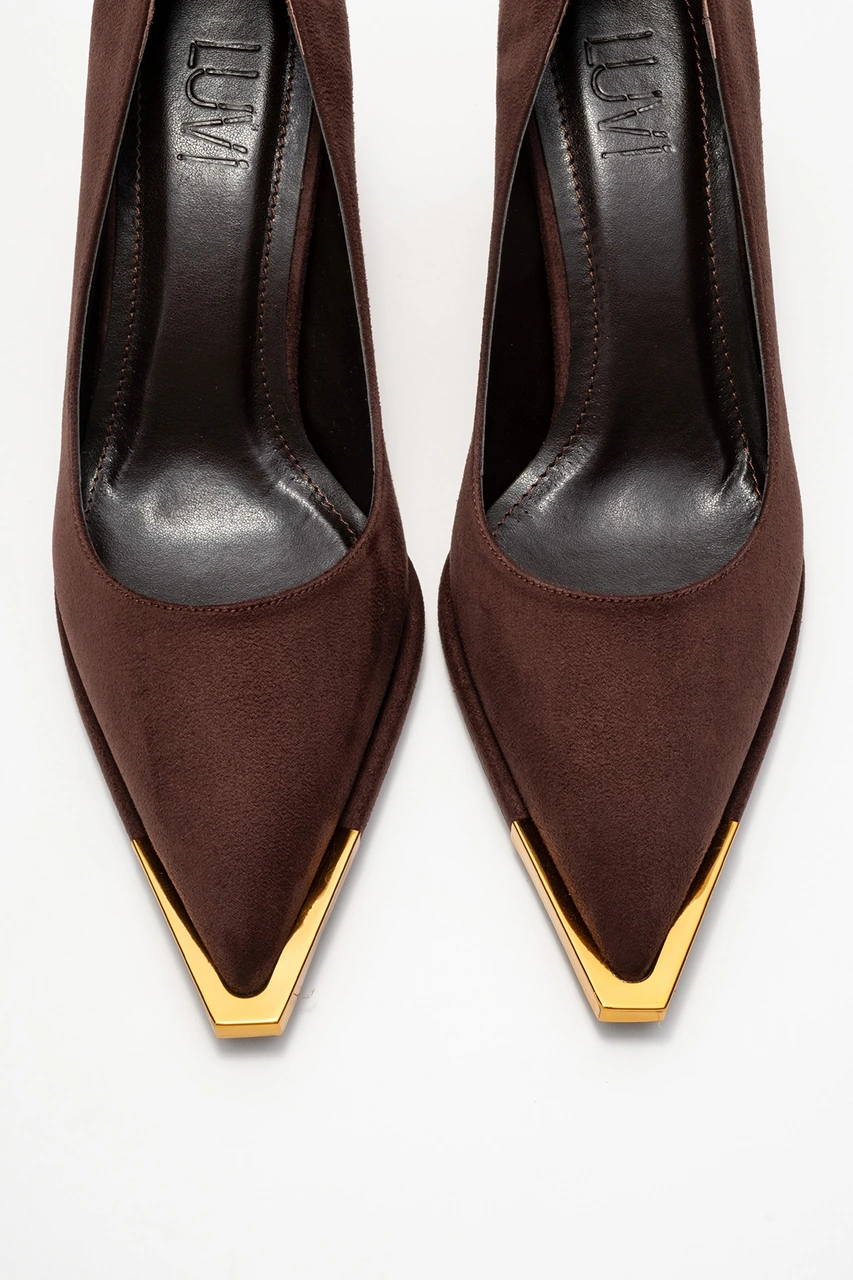 Lıora Kahverengi Süet Altın Detaylı Kadın Blok Topuklu Topuklu Ayakkabı Kahverengi