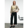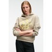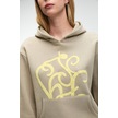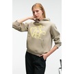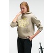 LIORAEN Kadın Baskılı Relaxed Kanguru Cepli Kapüşonlu Taş Rengi Sweatshirt