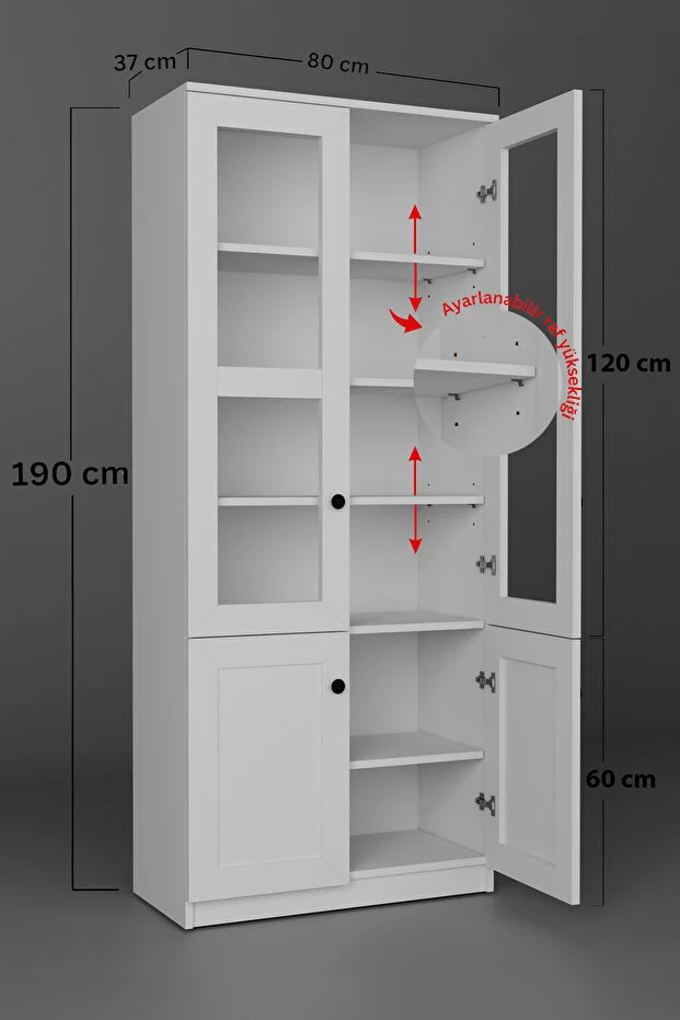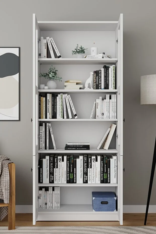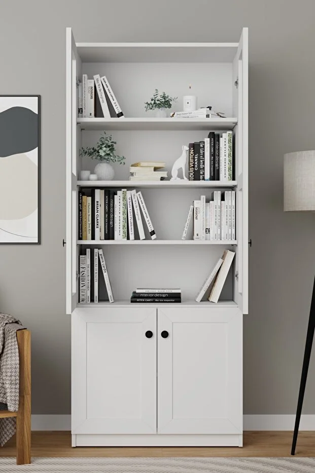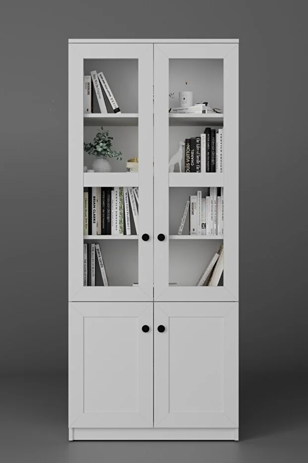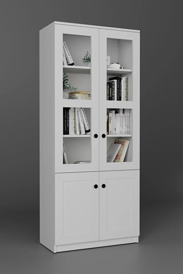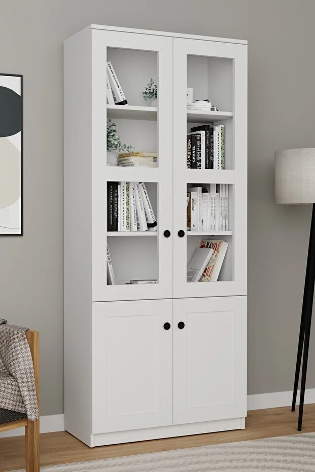 Lisa 4 Kapaklı Beyaz Vitrin - Kitaplık Ve Çok Amaçlı Dolap Beyaz