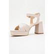 Lisbon Bej Cilt Çapraz Bantlı Kadın Platform Topuklu Ayakkabı BEJ CILT