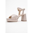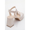 Lisbon Bej Saten Çapraz Bantlı Kadın Platform Topuklu Ayakkabı Bej Saten