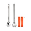 Lixada Ultralight Titanyum Uzun Saplı Kaşık Ve Spork Çatal Seti Taşınabilir Açık Yemek Kaşığı Gri