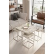 Lizbon 4+1 Kare Sehpa Takımı Beyaz Metal - Beyaz Mermer Tabla