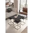 Lizbon 4+1 Kare Sehpa Takımı Gümüş Metal - Siyah Mermer Tabla Gümüş - Siyah Mermer