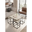 Lizbon 4+1 Kare Sehpa Takımı Siyah Metal - Beyaz Mermer Tabla