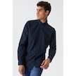 Deepsea Erkek Lacivert Slim Fit Pamuklu Cepli Kot Gömlek Çıtçıtlı Uzun Kollu Spor Gömlek 2502503 Lacivert