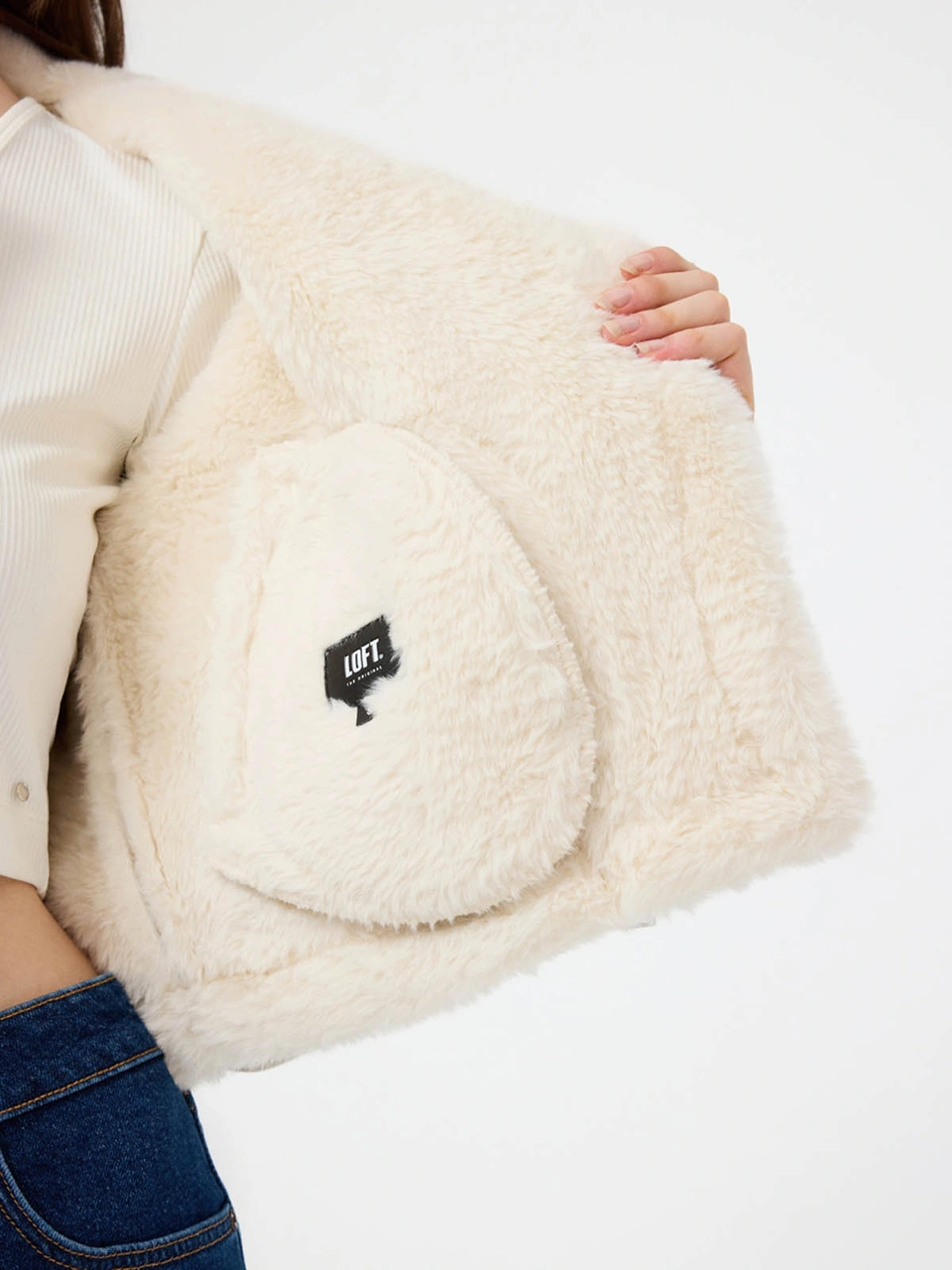 Kapüşonlu Düğmeli Peluş Mont - Kadın Beyaz