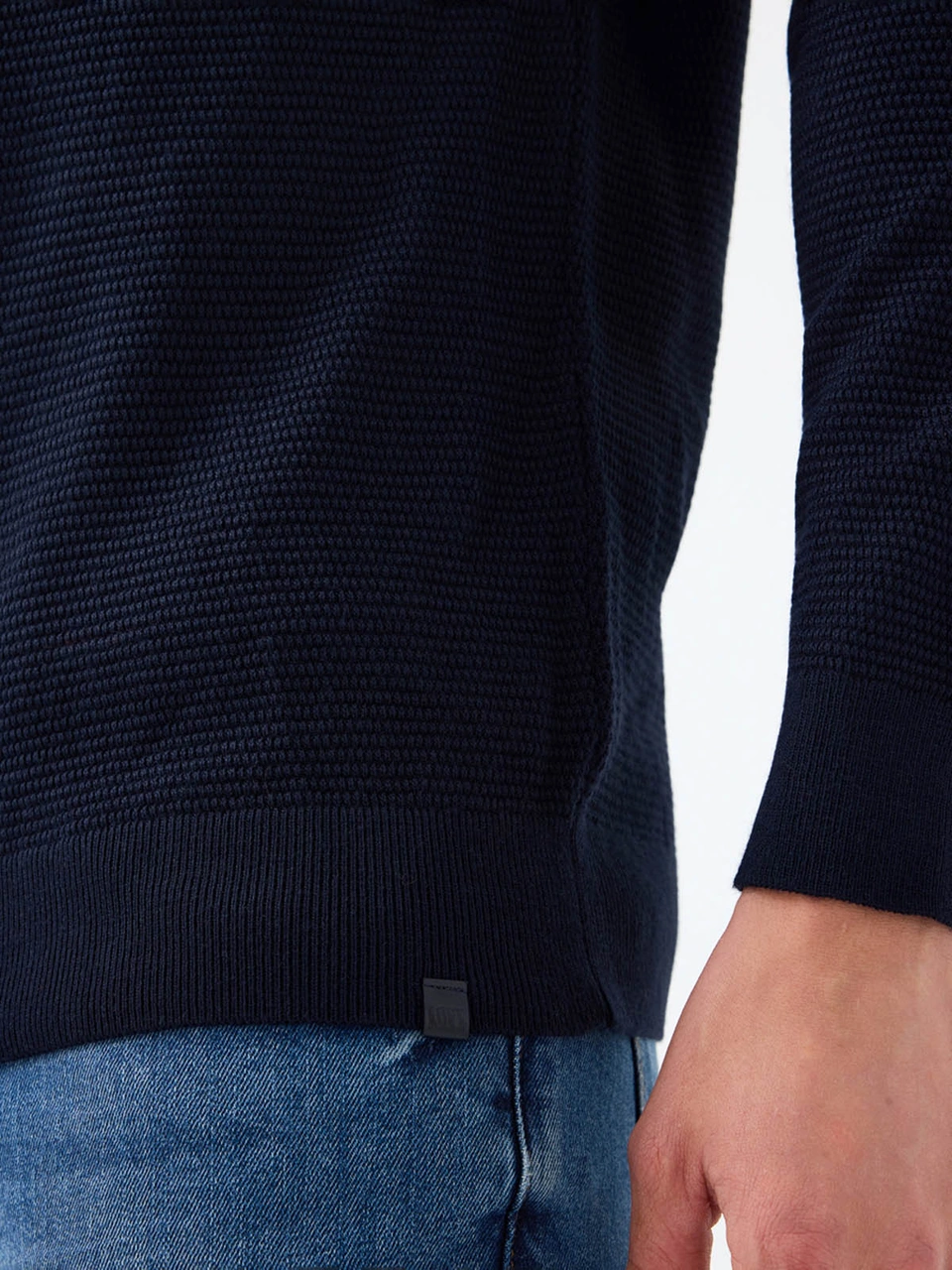Lacivert Yarım Fermuarlı Polo Yaka Erkek Kazak E7458 Lacivert