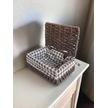 Hasır Eskitme Pembe Masa Üstü Meyvelik Mini Piknik Sepeti