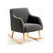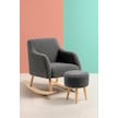 Loop Sallanan Sandalye Ve Puf Seti Antrasit Teddy Kumaş Ahşap Ayaklı Berjer - Sallanan Koltuk Puf Antrasit