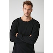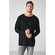 Lorenzo Erkek Özel Rustik Dokulu %100 Organik Pamuk Düğme Detaylı Regular Siyah Sweatshirt