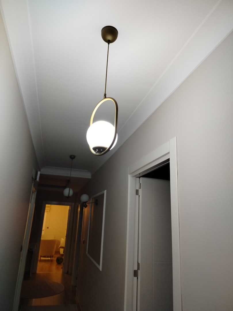 Lorin Tekli Eskitme Sarkıt Beyaz Camlı Modern Sarkıt Mutfak Salon Sarkıt Avize