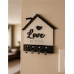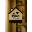 Love Yazılı Ev Şekilli Anahtarlık Askılığı, Anahtar Askılığı Siyah - Beyaz