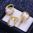 Lsooyh Doğal Tatlısu Büyük Barok İnci Yüzük Çok Renkli