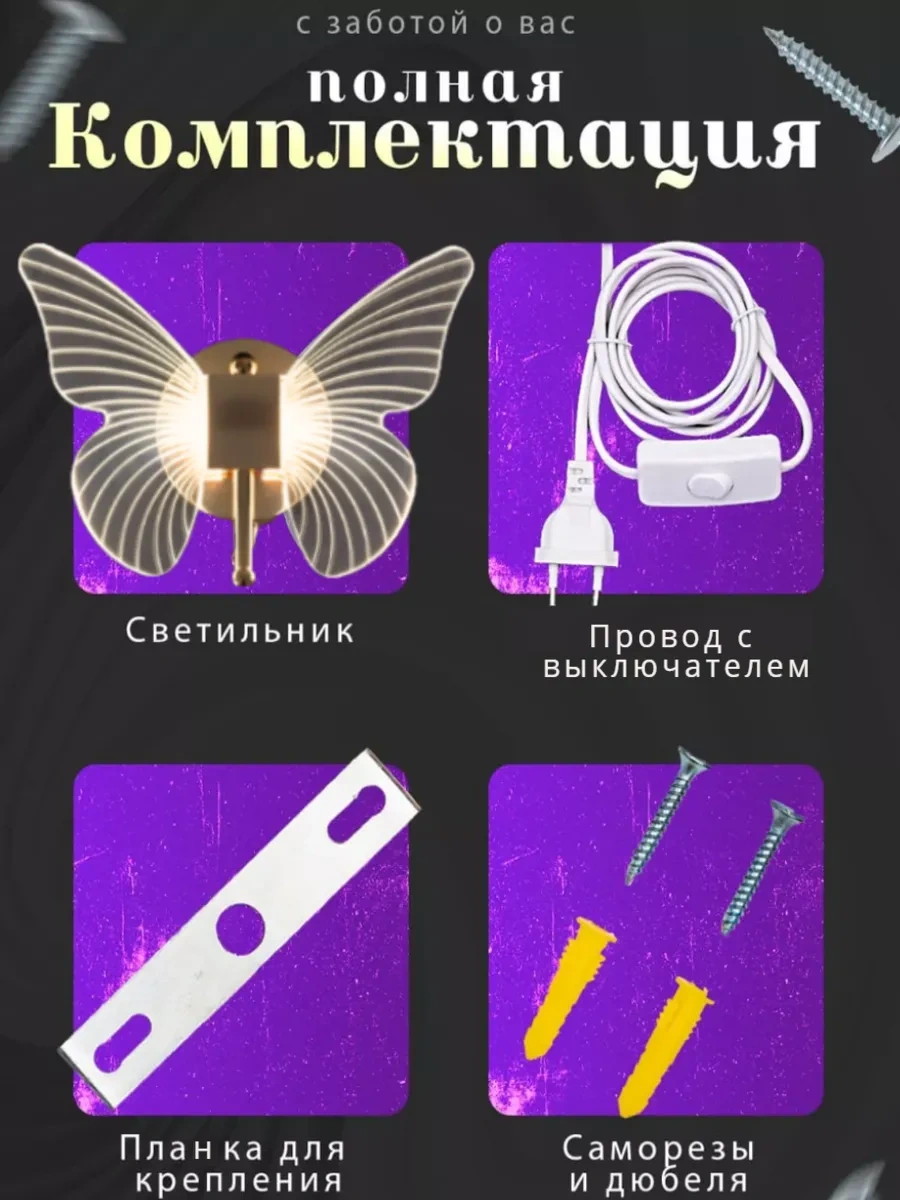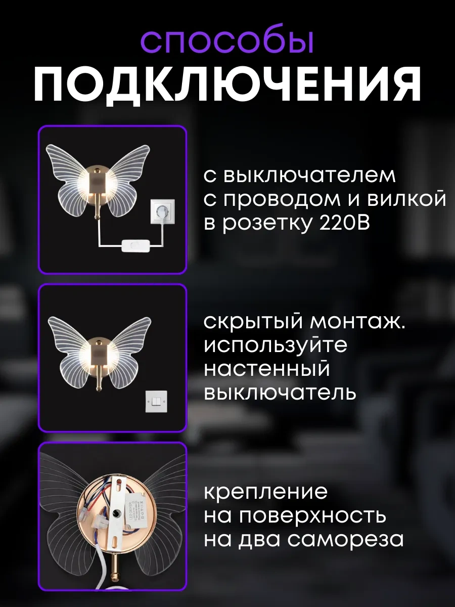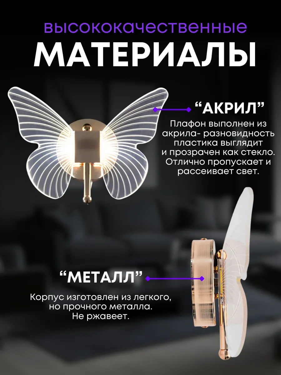 Lubimyj Svet Duvara Monte Led Aydınlatmalı Kelebek Duvar Abidesi, Anahtarlı. 231026152 Beyaz