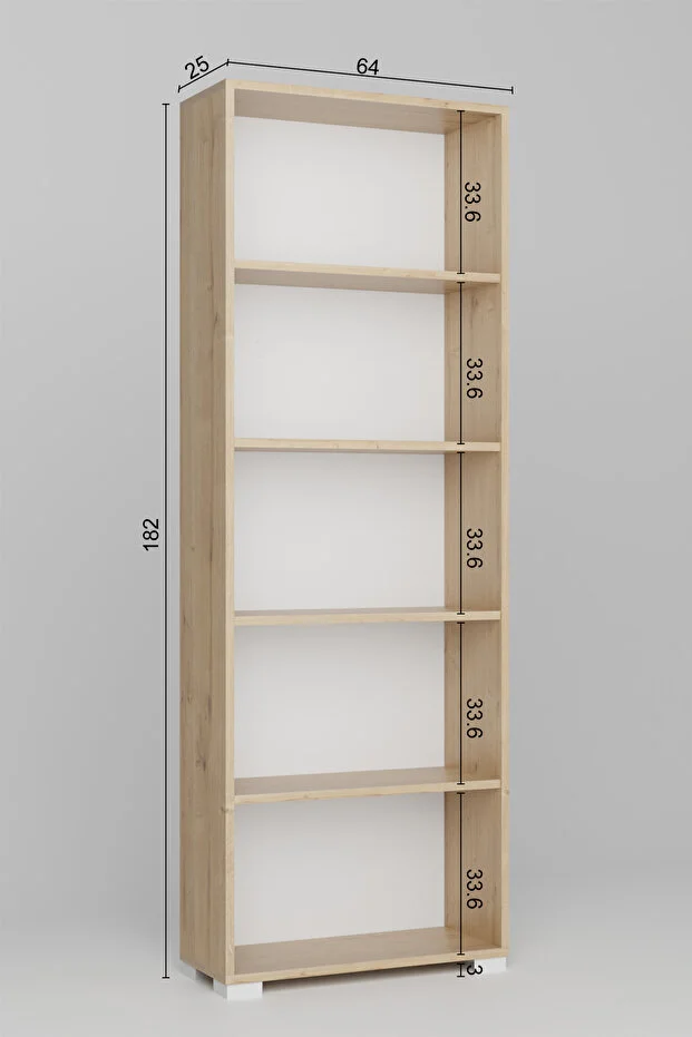 Lucas Serisi Safir Meşe 5 Raflı Kitaplık Safir Meşe