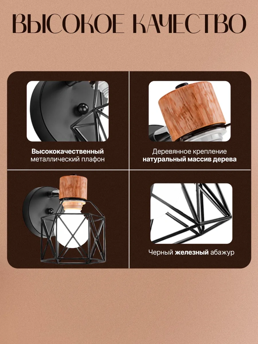 Lucımo Loft Tarzı E27 Duvar Lambası 396063896 Sandal Ağacı