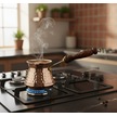 Ludıa İşlemeli Ahşap Saplı El Yapımı Eskitme Bakır Cezve M1