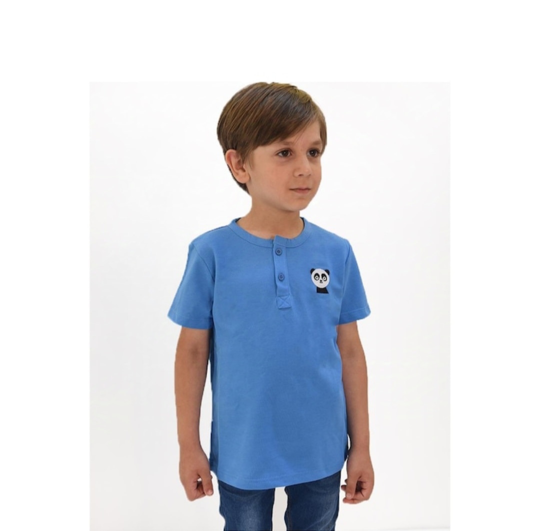 Luess Erkek Çocuk Nakış Detaylı Hakim Yaka Tshirt-mavi Mavi