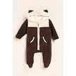 Luess Peluş Kulak Detaylı Unisex Bebek Tulum - Kahverengi