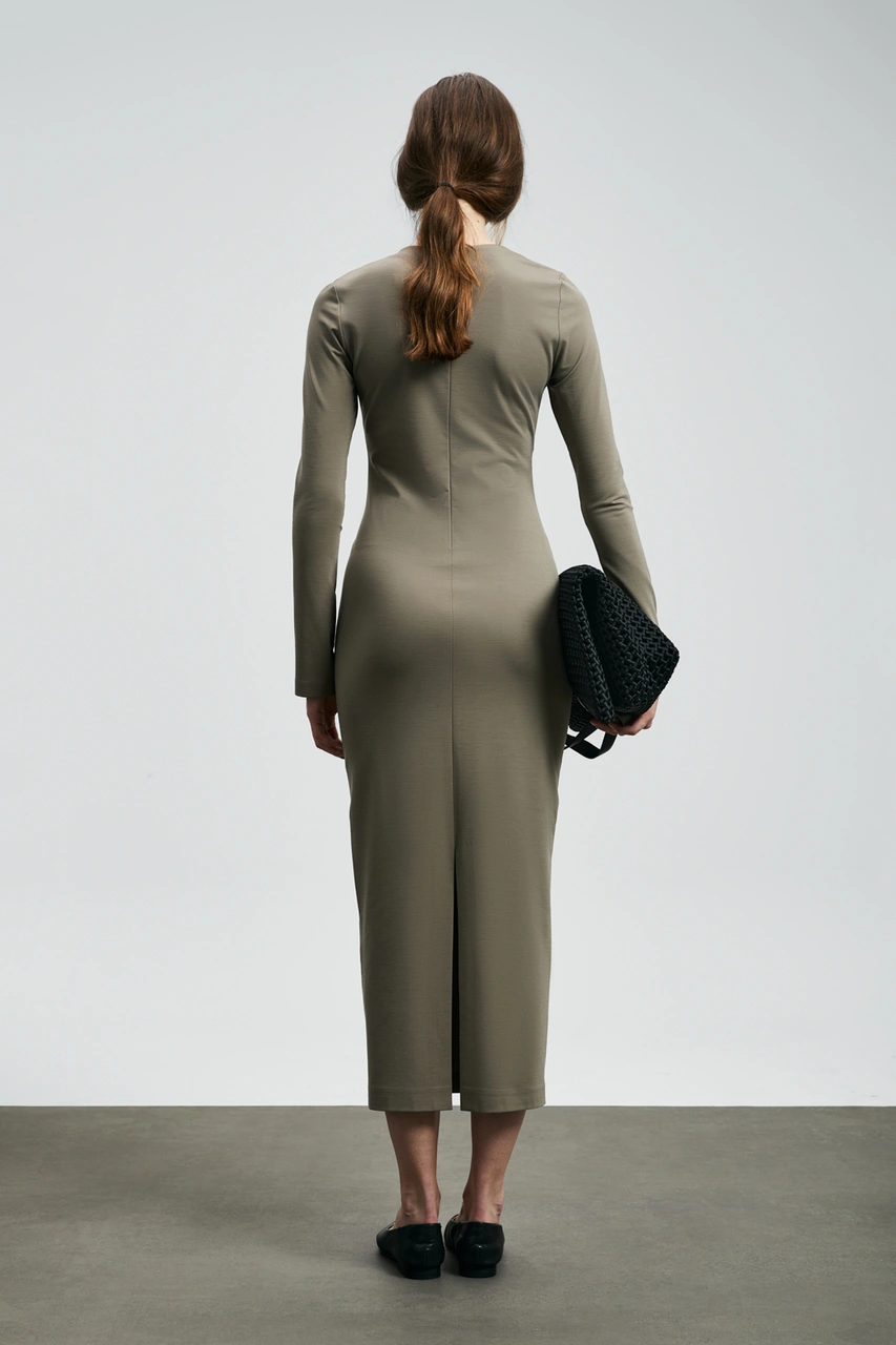 Madonna Yaka Dar Kalıp Uzun Kollu Elbise Bordo