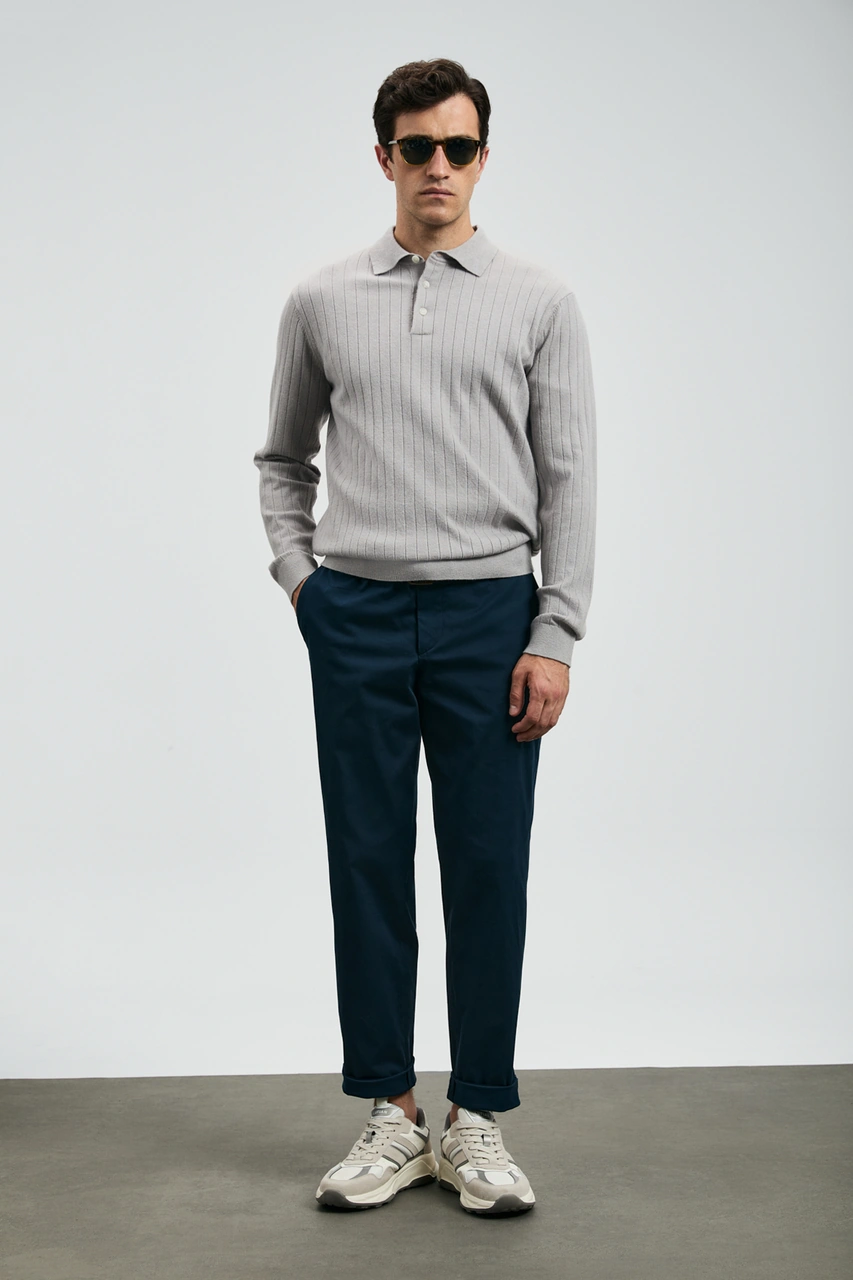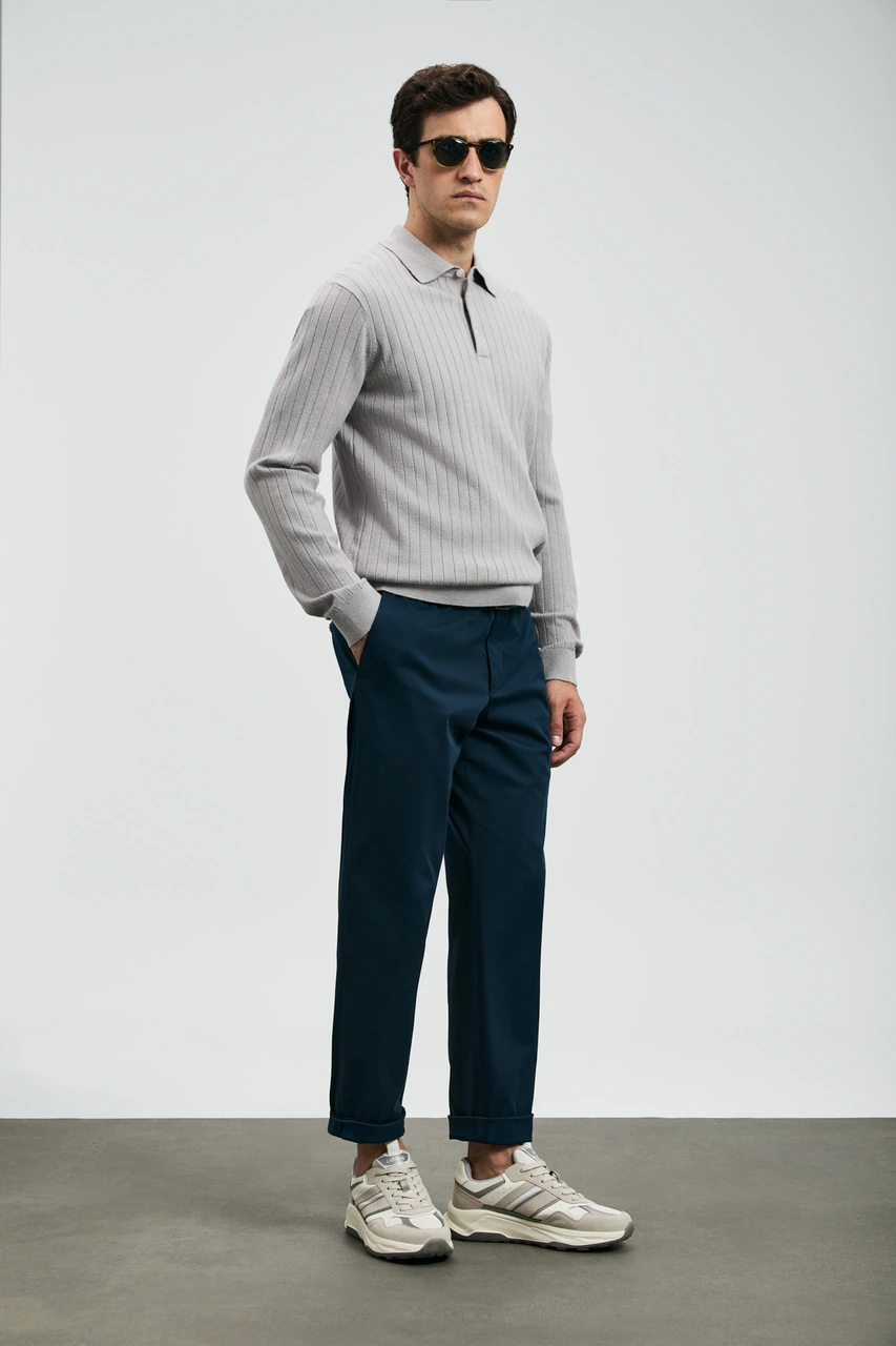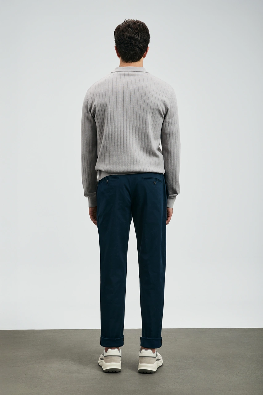 Lacivert Polo Yaka Fermuarlı Erkek Kazak E7427 Lacivert