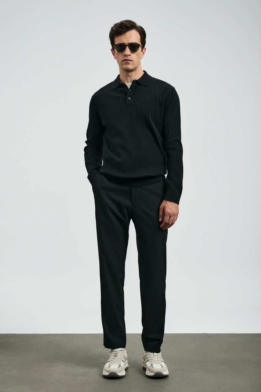 Monox Erkek Yarım Fermuarlı Polo Yaka Triko Kazak Siyah