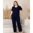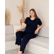 Lukitus Büyük Beden Battal Bambu Dantel Detaylı Kısa Kol Kadın Pijama Takımı Lacivert
