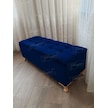 Lüks Çizgi Kapitoneli Sandıklı Puf Bench 120 Cm Gold Ayak Lacivert