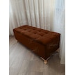 Kapitoneli Ayak Ucu Kapı Önü Antre Bench Puf Ceviz Ayak 90 45 Turuncu
