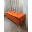 Lüks Çizgi Kapitoneli Sandıklı Puf Bench 120 Cm Gold Ayak Turuncu