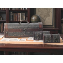 Lüks İşlemeli Vintage Eskitme Tasarımlı 3lü Sandık Çok Amaçlı Takı Aksesuar Kutusu Dekoratif Obje B