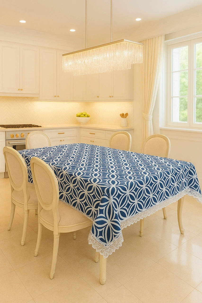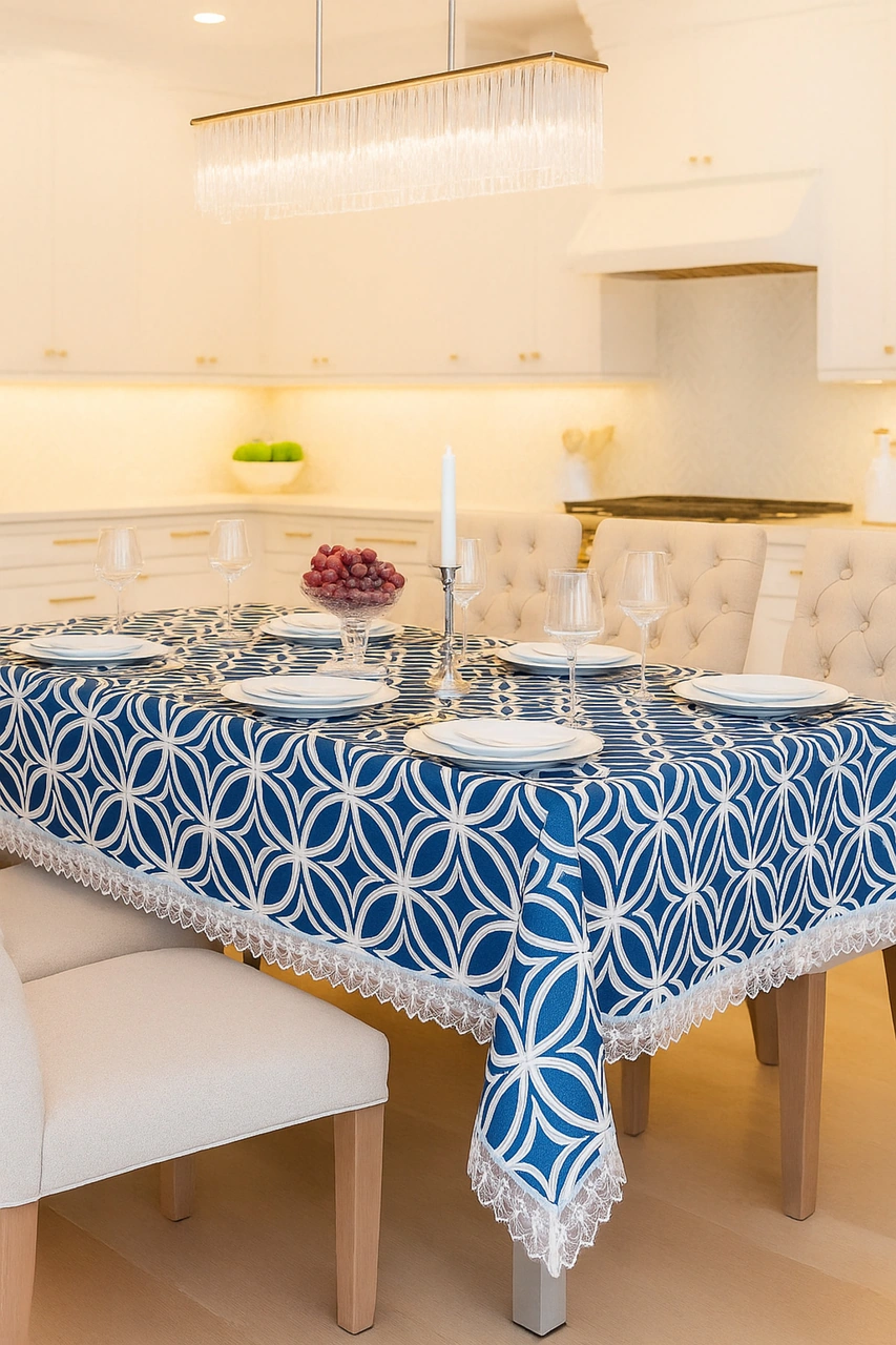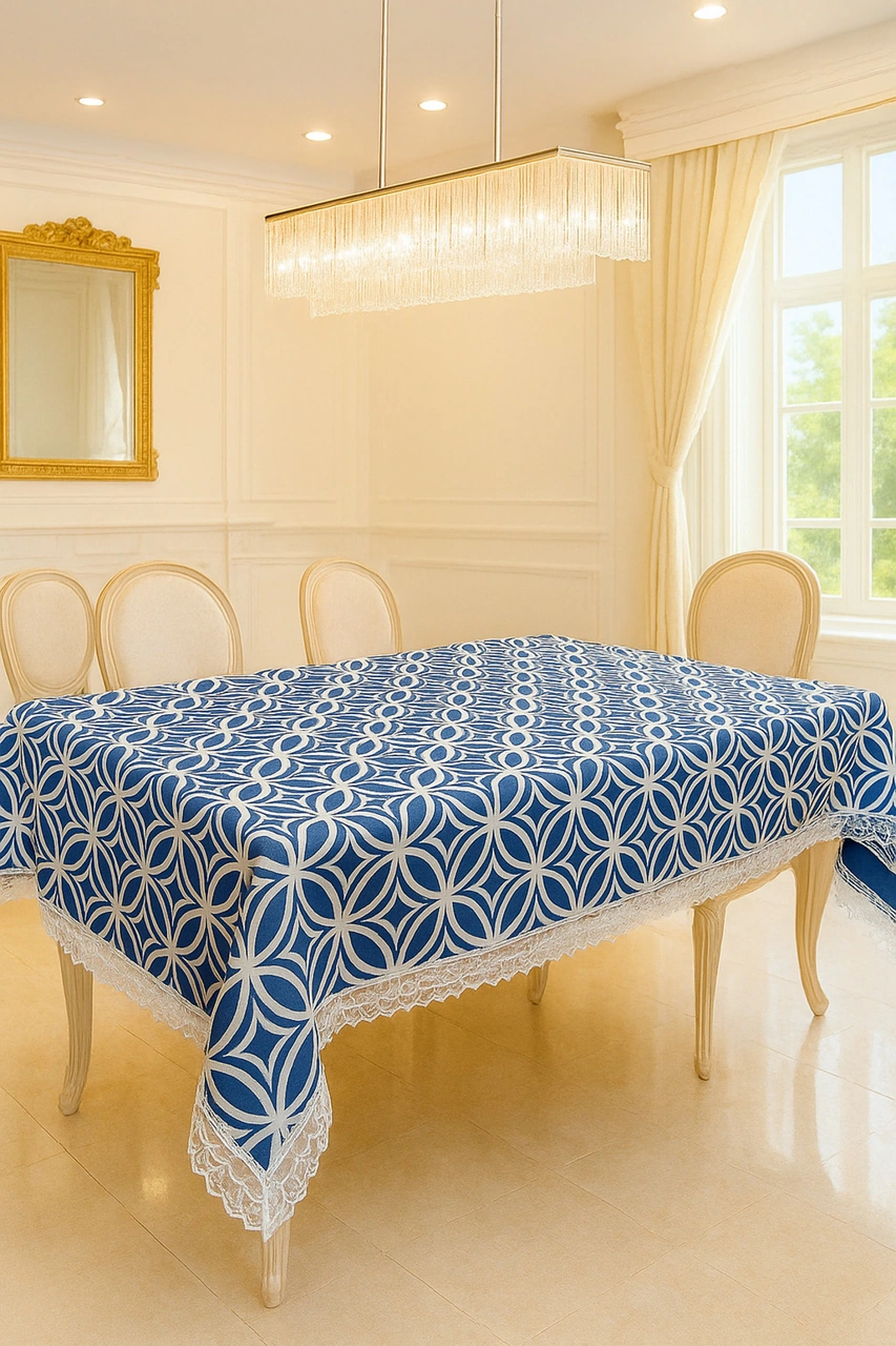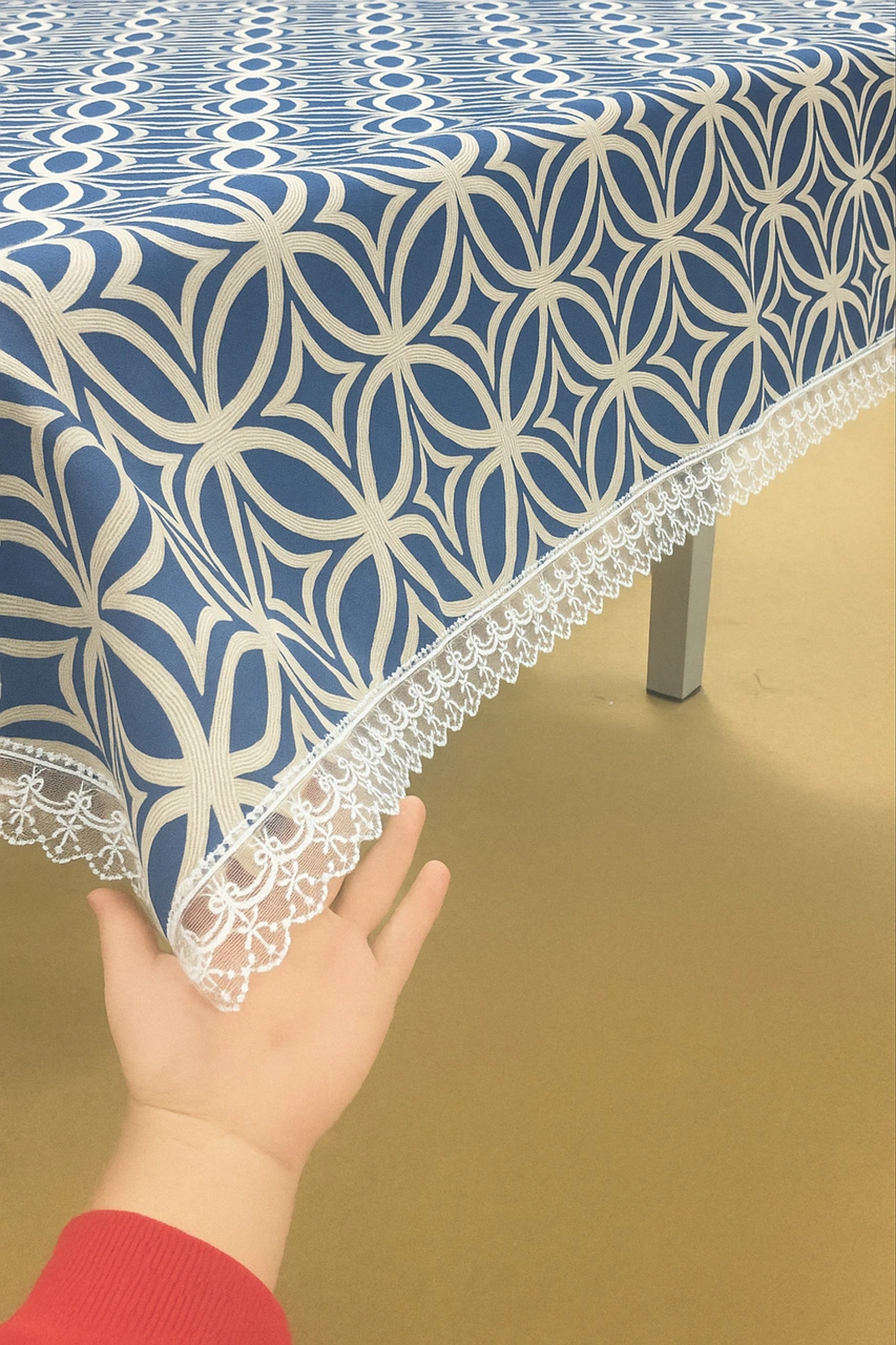 Lüks Lacivert Masa Örtüsü Dantel Kenarlı Silinebilir Kumaş Modeli Çok Renkli