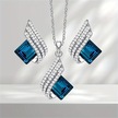 Lüks Mavi Melek Kanatları Kolye Seti Gümüş Kaplama Gümüş