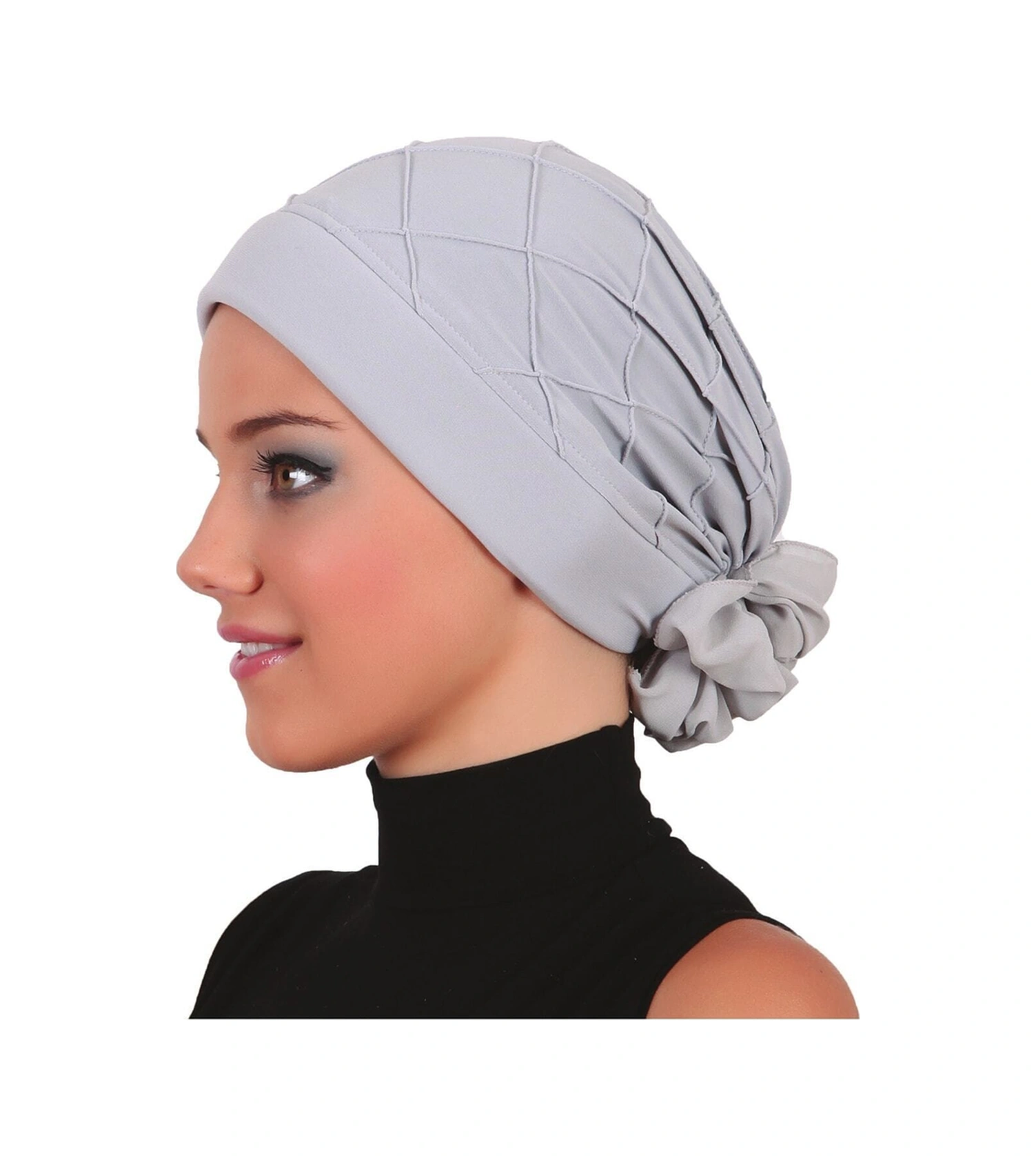 Lüks Nervürlü Arkası Şifon Aksesuarı Açık Gri Hazır Türban Tesettür Bone Açık Gri