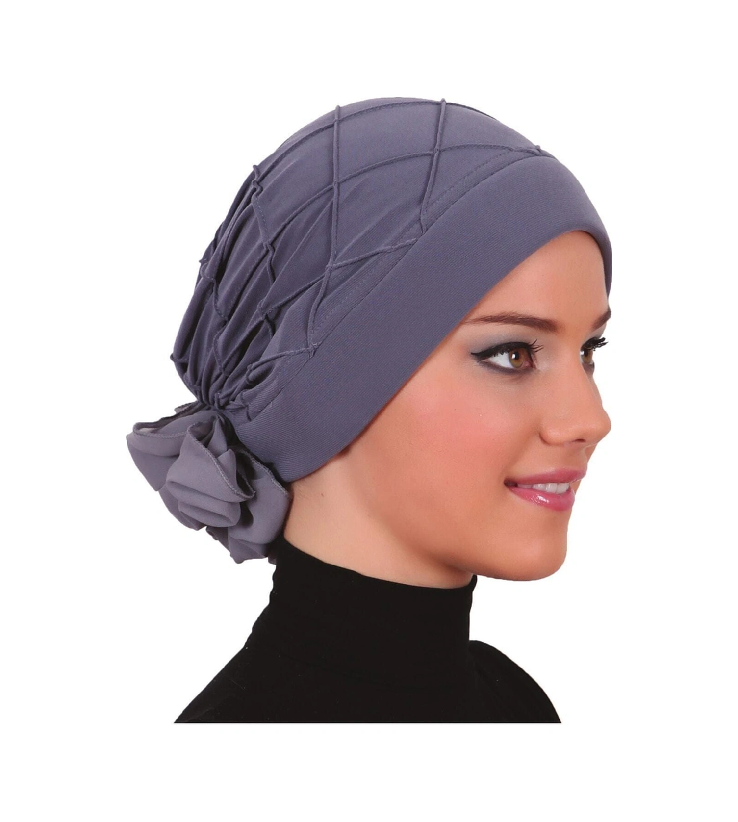 Lüks Nervürlü Arkası Şifon Aksesuarı Koyu Gri Hazır Türban Tesettür Bone Koyu Gri