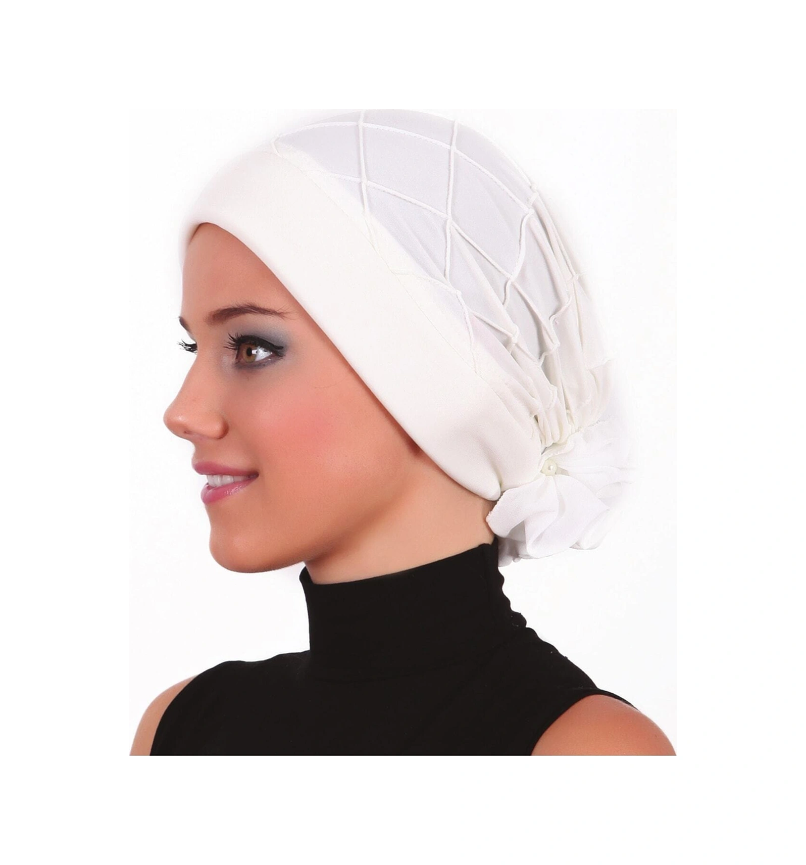 Lüks Nervürlü Arkası Şifon Aksesuarı Krem Hazır Türban Tesettür Bone Krem